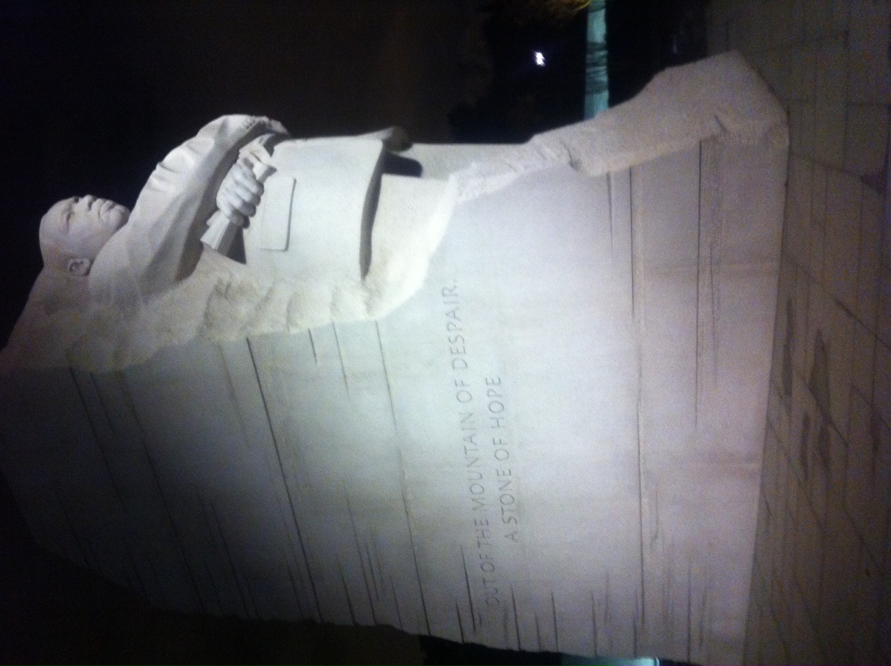 At the memorial, King is emerging from a section of a mountain, carved out of stone. Observers don’t even reach his knee when standing next to him. His face is unyielding. His arms crossed. His gaze stares in the direction, across the water, to the unmistakable dome of the Jefferson Memorial. It is a beautiful sight, and a beautiful site.