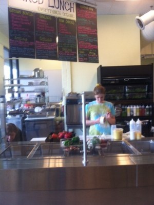 Making fresh, organic food for the new Naked Lunch counter: Fresh juices, kombucha on tap, salads, muffins and warm grain bowls.