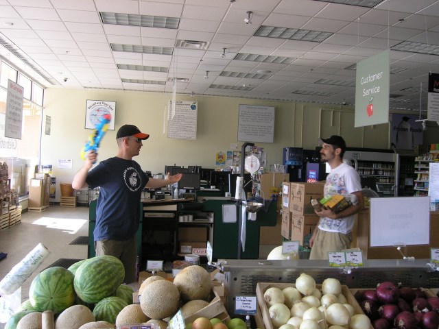 Over MOMs 25th Anniversary weekend, the lights (and A/C) might’ve deserted the employees in our Bowie, MD store, but it didn’t stop them from whipping up some fun & shenanigans (and some work for that matter). Check out the photographic evidence: