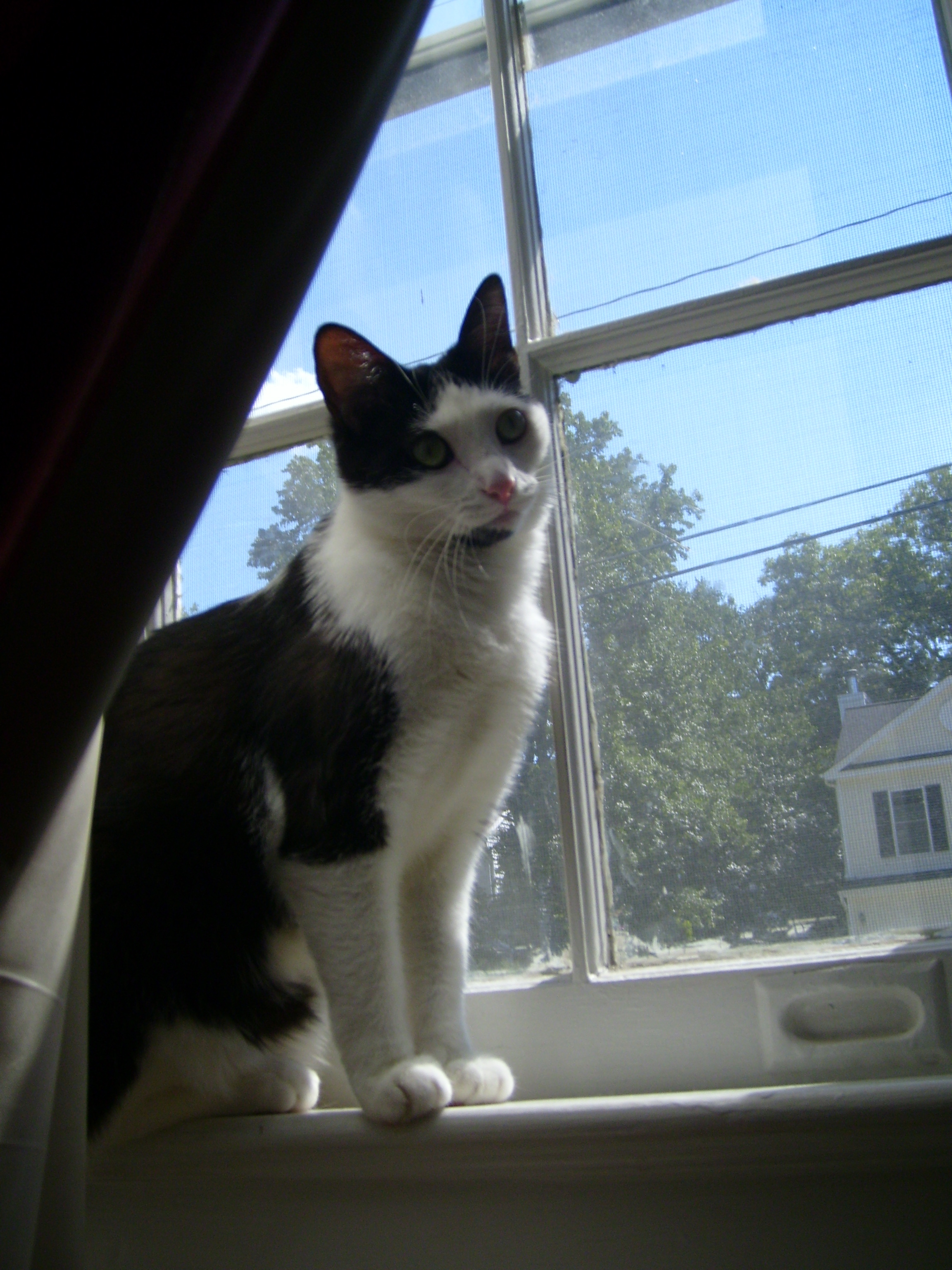 We now have reached our maximum household population for permanent pets: kitties Roger and Margene; and pups Harvey Wallbanger and Clementine Petunia.