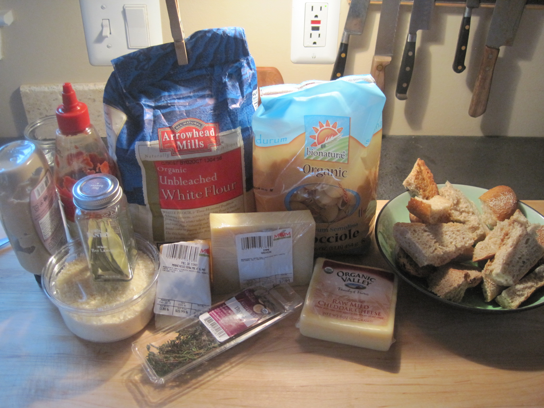 3 packed cups (12 oz.) cheese – I used about 1/3 sharp cheddar, 1/3 manchego and 1/3 gruyere