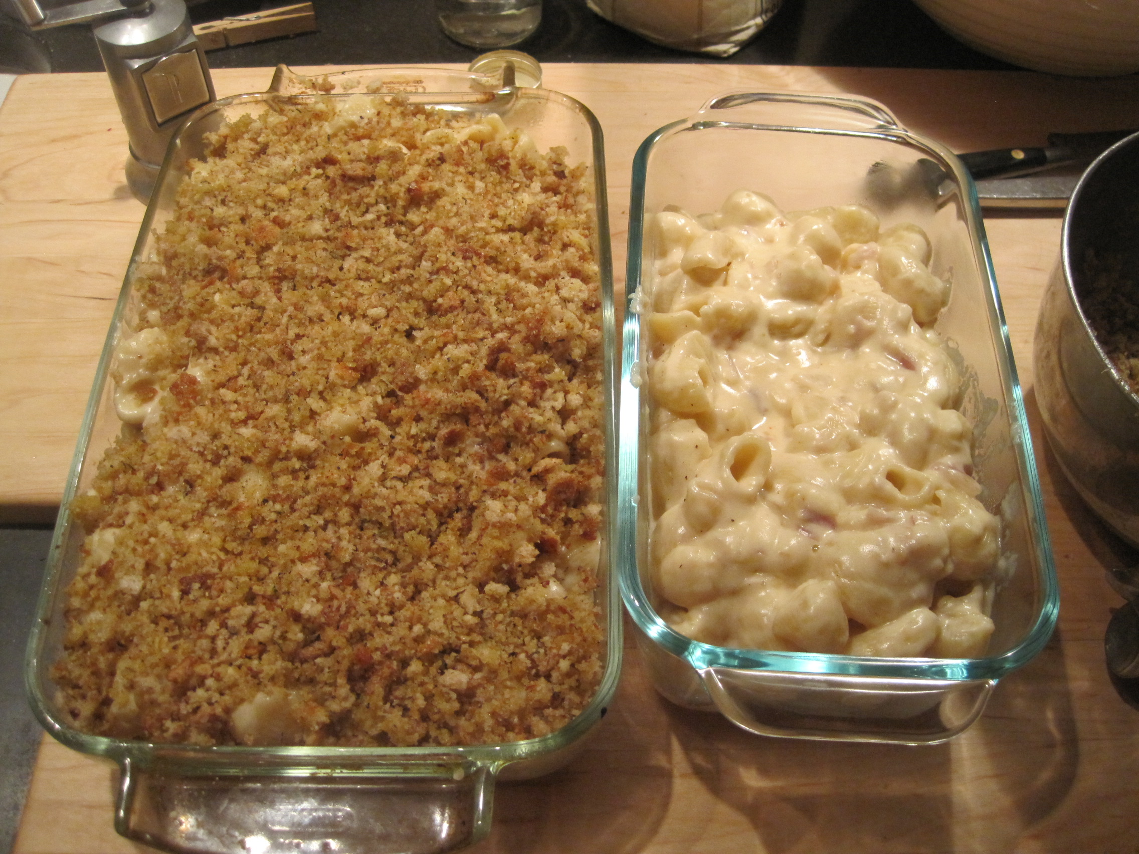 Mmm, mac and cheese. If you think it’s good from a box, try this oven-baked version! Serves 6-8, or about 4 by halving the recipe. Prep time and cook time is about 1 1/2 hours.