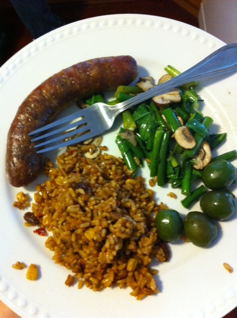 So for a recent grill night, my hubby threw some local Ayrshire Farm kielbasas on the grill and I pulled together a bit of a veggie saute for the grill, and finally we added some Seeds of Change Caribbean Style Rice for an eclectic meal.