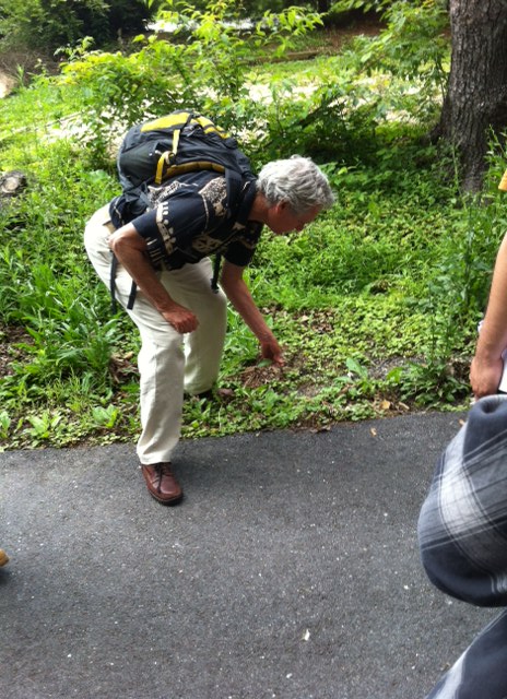 We stopped at the gazebo for a bag lunch and a lecture on several herbal supplements Dr Hobbs formulated for Rainbow Light Nutritional Supplements, including one of his vitamin favorites: Certified Organic Men’s and Women’s Multivitamins. We asked for autographs in our books. We meandered back up the terraced hill; someone spotted a big brown snake sunning herself on a rock near the water feature and lily pond. We delighted at the blooms, and guessed the names of various sprouts and buds.
