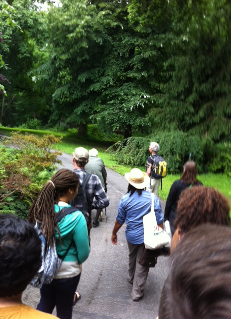 The bonus of the afternoon was a final lecture on the side of the road where we waited for our bus to take us back to MOMs: Dr Hobbs pointed out “weeds” and a tree near the driveway, named them, and related instructions for cooking, nutritional quality, and other tips. Weeds we overlook and mow down in our yards every week, can be used in a dinner salad or stir fry! Ground Ivy, Greater Plantain, Black Walnut, and Chicory: we were amazed at the versatility and value of those ill-famed weeds.
