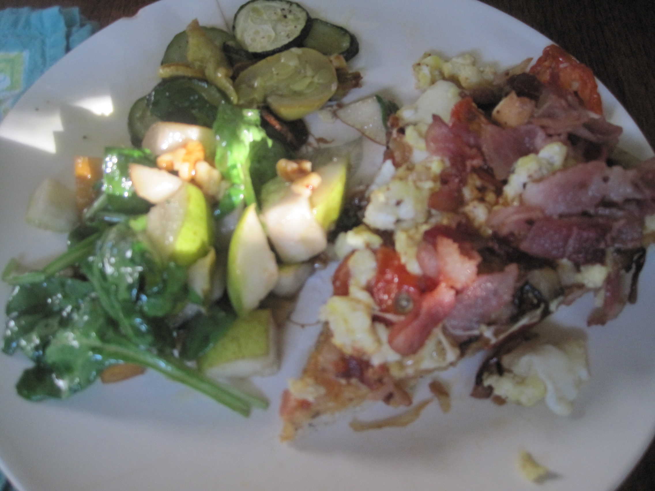 This is an omnivore’s pizza, but could easily be gluten-free with a gluten-free crust, and vegetarian by using vegetarian sausage. Takes 1 hour to prepare. Inspired by MOM’s employee Tammy Moore.