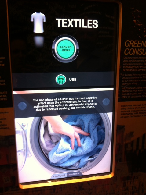 The first room contained a lot of information about fabrics, the pesticides and chemicals used to make them, and the energy used to care for them, and the waste they create when they are discarded. I briefly noticed a fact about Texas being the largest producer of cotton. Surely, I thought, China or India is a larger producer of cotton, but it must’ve said largest in the Americas or something like that. Tires, and other popular non-fashion items were discussed at length also.
